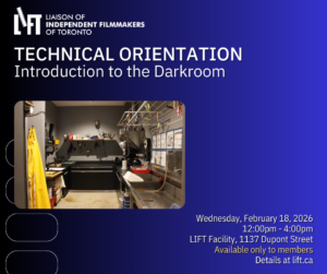 LIFT Announces Artists Selected for Newcomer Filmmentor Program 2025Tuesday 2 September 2025, 00:00LIFT ANNOUNCES ARTISTS SELECTED FOR NEWCOMER FILMMENTOR 2025 PROGRAM Toronto, December 23, 2025—The Liaison of Independent Filmmakers of Toronto’s (LIFT) is pleased to welcome three newcomer filmmakers to our facilities to participate in the Newcomer Filmmentor 2025 Program. This is our fifth iteration of the Newcomer Filmmentor program since 2017.”… more |